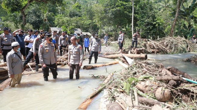 Iqbal menyusuri area bekas banjir bandang yang kini tertutup lumpur setinggi 15-25 cm. Material yang terseret banjir bandang, seperti batang pohon dan ranting kayu, masih berserakan di lokasi.
