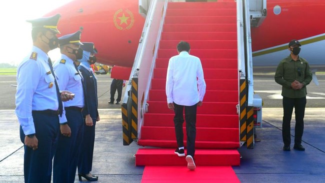 Dari keterangan tertulis Biro Pers, Media, dan Informasi Sekretariat Presiden, Rabu (8/12/2021), Jokowi bertolak ke dari Bandara Supadio ke Bandara Tebelian menggunakan pesawat ATR Garuda dan pesawat CN 295 TNI AU.