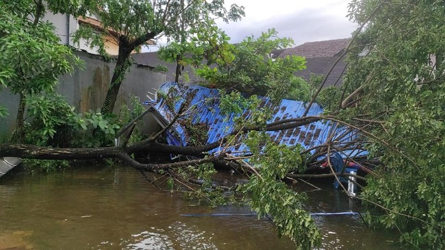 "Tak hanya pohon yang tumbang, listrik padam hingga pagi, ada juga rumah yang baru di bangun di kawasan Kelapa Gading, Sungai Gading, roboh diterjang angin ribut dini hari tadi," sebut Hamdan, anggota Tagana Kota Banjarmasin.