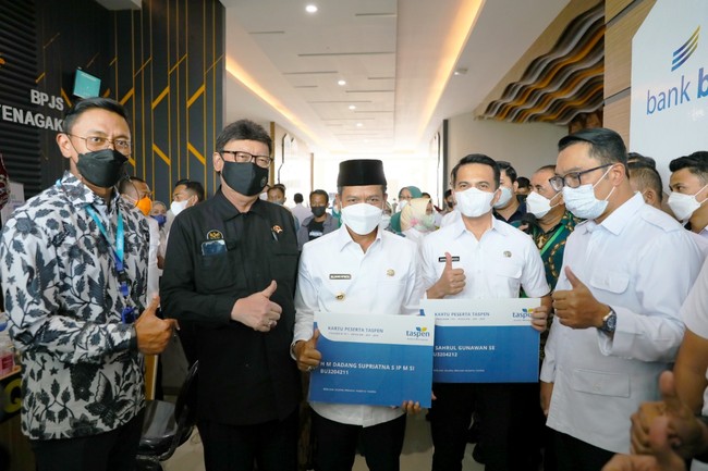 Dalam kesempatan tersebut, Tjahjo Kumolo beserta Direktur Perencanaan & Aktuaria TASPEN Wahyu Tri Rahmanto secara simbolis menyerahkan kartu peserta TASPEN (KPT) kepada Bupati Kabupaten Bandung H M Dadang Supriatna dan Wakil Bupati Kabupaten Bandung H Sahrul Gunawan.