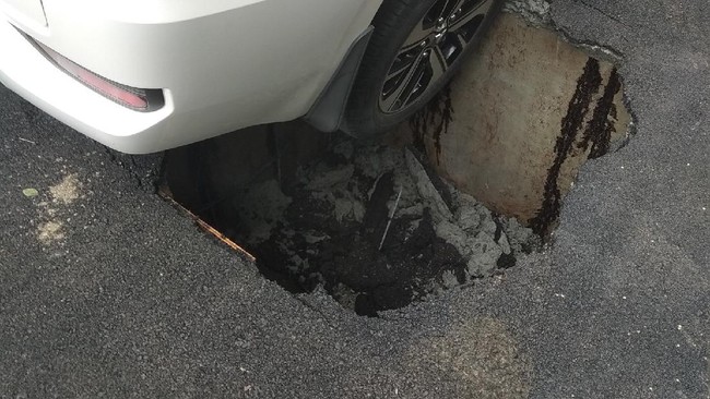 Pasalnya, beton sumur resapan itu baru diaspal sehingga kondisi jalan-nya tampak mulus. Sampai akhirnya peristiwa mobil terperosok itu terjadi.