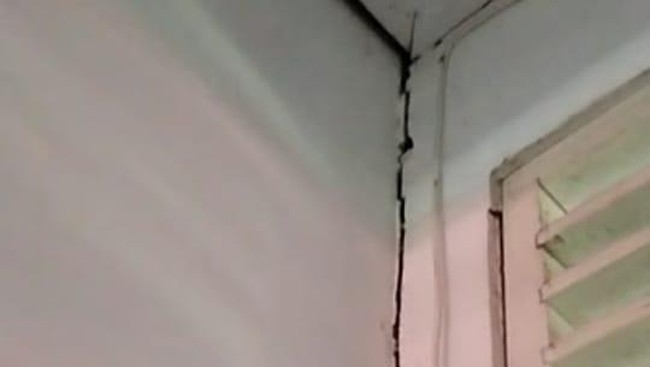 Dari video dan foto yang diterima detikcom, Selasa (14/12/2021), tampak tembok RSUD Larantuka retak. Keretakan terlihat di bagian atas tembok dan sisi kanan dan kiri jendela.