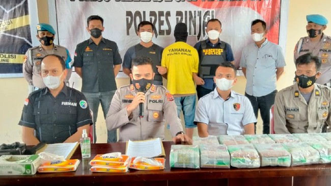 Polres Binjai menangkap seorang pria terkait kasus narkoba di Binjai, Sumatera Utara (Sumut). Polisi menyita 13 kg sabu dari pria berinisial YI (31) itu.