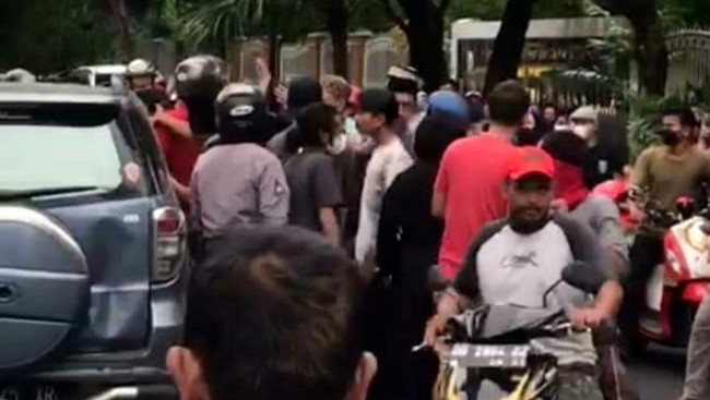 Tanpa disangka, sejumlah peserta iring-iringan yang menggunakan sepeda motor turun dari kendaraan. Selanjutnya pengendara itu dianiaya hingga mobilnya menjadi sasaran perusakan.