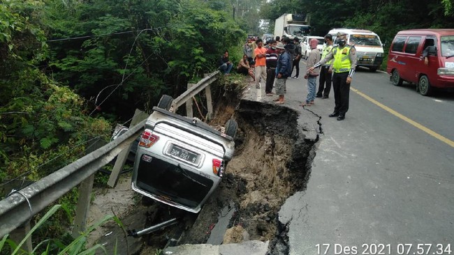 "Kedalaman longsor sekira 3 meter dari jalan. Penumpang tujuh orang, satu orang luka ringan sementara enam orang negatif luka," ujar Bungaran.