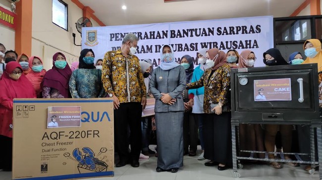 "17 kube ini menerima bantuan sarpras peralatan, semisal kulkas pendingin, mixer jumbo, oven besar, mesin jahit, mesin seset dan jahit sepatu serta mesin bordir. Selain itu, mereka juga mendapat suplai bantuan bahan-bahan untuk proses produksi," kata Ning Ita dalam keterangan tertulis, Sabtu (18/12/2021).