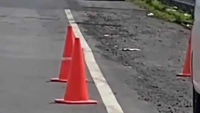 "Tadi sepanjang jalan sudah ada perbaikan, tapi mohon segera diselesaikan, Pak. Waduh kacau banget, ini bahaya banget, Pak. Di belakang, ada lagi tuh, Pak," kata pria itu.