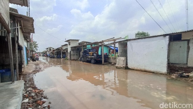 Pantauan detikcom di Blok Eceng RT 12 RW 22 Pluit, pukul 11.30 WIB, Senin (20/12/2021) tampak rob menggenang setinggi kurang lebih 5 cm sampai 7 cm.