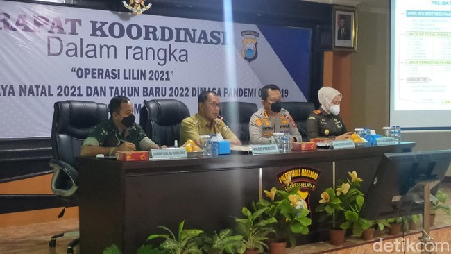 "Unsur-unsurnya dari Polrestabes, kemudian kami di backup dari Polda Sulsel, Pemkot, dan teman-teman TNI. Mulai di seluruh titik gereja, 31 gereja prioritas, kemudian tempat wisata, tempat hiburan, termasuk jalan-jalan di lokasi wisata," kata Kapolrestabes Makassar Kombes Witnu Urip Laksana setelah mengelar rapat koordinasi Natal dan tahun baru, di Polrestabes Makassar, Senin (20/12/2021) sore.