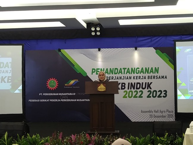 "Saya mengucapkan selamat atas keberhasilan merumuskan PKB periode 2022-2023, sehingga harapan mewujudkan hubungan industrial yang harmonis, dinamis dan berkeadilan di PT Perkebunan Nusantara dapat tercapai," ujar Indah dalam keterangan tertulis, Selasa (21/12/2021).