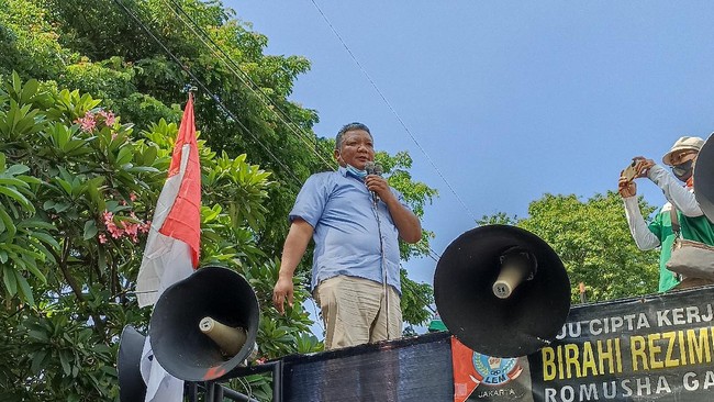 Rusdi mengatakan itu dari atas mobil komando di depan gedung Indosat, Jalan Medan Merdeka Barat, Jakarta Pusat, Rabu (22/12/2021). Dalam orasinya, Rusdi mengatakan pihaknya mengecam tindakan yang dilakukan PT Indosat terkait pembubaran IM2 yang berdampak pada ratusan pegawai IM2.
