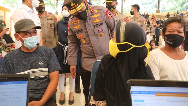 "Vaksinasi massal yang dilakukan di Provinsi Banten ini guna mencapai target vaksinasi sebagaimana arahan Presiden Joko Widodo (Jokowi)," kata Sigit dalam pengarahannya.