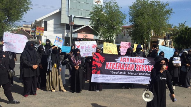 "Saat ini Aceh dalam kondisi darurat kekerasan seksual di mana setiap harinya ada satu anak atau perempuan yang diperkosa dan dilecehkan," kata Koordinator Aksi Destika Gilang Lestari.