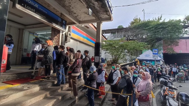 Antrean panjang juga tampak di Stasiun Tebet, Jakarta Selatan. Pantauan detikcom pukul 17.30 WIB, tampak antrean penumpang KRL di Stasiun Tebet masih mengular hingga ke luar stasiun.