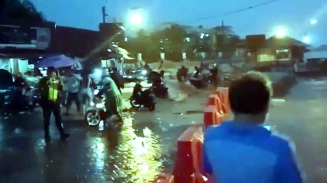 "Ada motor warga yang sampai terseret beberapa meter, pokoknya jalanan ini penuh genangan air sampai sepinggang, tadi ada motor yang terbawa. Untungnya diselamatkan warga," kata Ati, pemilik warung kopi di kawasan dermaga Palabuhanratu, Kamis (23/12/2021).