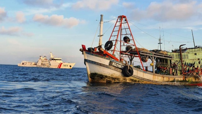 "Unsur patroli Bakamla RI, KN Pulau Dana-323, berhasil menangkap kapal ikan asing (KIA) berbendera Vietnam yang sedang melakukan aktivitas penangkapan ikan secara ilegal di perairan Natuna Utara perbatasan Indonesia-Malaysia bagian barat, Kabupaten Natuna, Provinsi Kepulauan Riau," ujar Kabag Humas dan Protokol Kolonel Bakamla Wisnu Pramandita melalui keterangan tertulis, Jumat (24/12/2021).