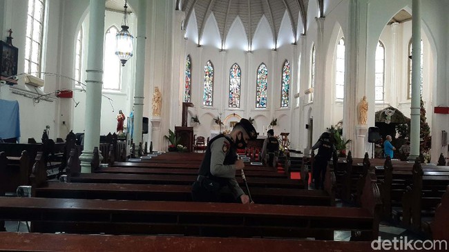 Petugas berjaga sebelum kegiatan gereja berlangsung hingga selesai dilaksanakan. Petugas juga melakukan patroli di gereja untuk melakukan pengamanan.
