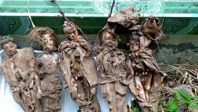 Warga yang ada dalam video viral menyebut boneka-boneka itu dipenuhi tusukan jarum pentul. Mulai kepala, mata, pipi, leher, hingga ke kaki.