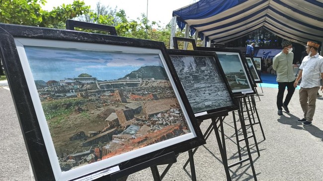 Insiden tsunami Aceh pada 2004 kini terabadikan dalam bingkai-bingkai foto. Sebuah pameran foto digelar dalam rangka memperingati 17 tahun kejadian tersebut.