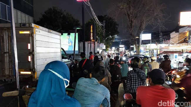 Arus lalu lintas di Jalan Bangka Raya saat itu sempat terjadi kemacetan. Hal itu karena sejumlah warga menghentikan sepeda motornya dan ikut nobar pertandingan Final Piala AFF 2020.