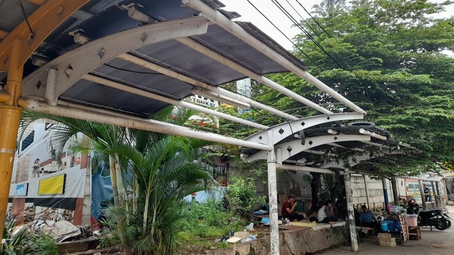 Pantauan di lokasi, Kamis (30/12/2021) pukul 10.29 WIB, atap pedestrian memiliki pilar-pilar besi. Bentuknya mirip dengan atap halte. Banyak atap yang sudah bolong. Kondisi itu membuat matahari atau hujan bisa langsung menembus pejalan kaki.
