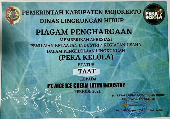 "PT Aice Ice Cream Jatim Industry sangat bangga bisa meraih penghargaan Peka Kelola yang diberikan oleh Kabupaten Mojokerto. Penghargaan ini merupakan bukti dari kepedulian kami dalam mengelola lingkungan hidup," kata Andreas dalam keterangan tertulis, Rabu (29/12/2021).