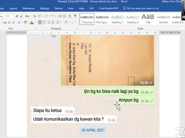 Azis: Siapa itu ketua? Udah komunikasikan dengan kawan kita?