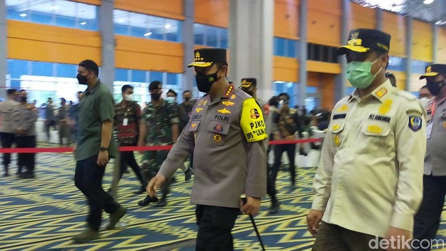Jenderal Sigit meninjau pelaksanaan vaksinasi di Gedung Celebes Convention Center (CCC), Jalan Metro Tanjung Bunga, Makassar, Jumat (31/12/2021). Dia langsung mengecek satu persatu meja vaksinasi dan mendengarkan paparan petugas kesehatan.