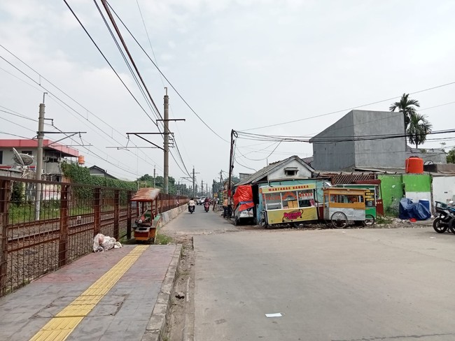 Pantauan detikcom di depan SDN Pejaten Timur 07 Pagi, Jumat (31/12/2021), tampak proyek jalan yang belum selesai. Jalan tersebut berada tepat di samping rel kereta api.