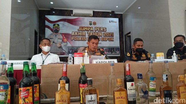 "Sehubungan dalam rangka menghadapi perayaan Natal dan tahun baru, guna menjaga ketertiban dan ketentraman masyarakat serta mengantisipasi tindak pidana yang terjadi, maka Satresnarkoba Polres Metro Depok dan Unit Reskrim Polsek Jajaran melaksanakan giat operasi miras," ujar Kapolres Metro Depok Kombes Imran Edwin Siregar, Jumat (31/12/2021).