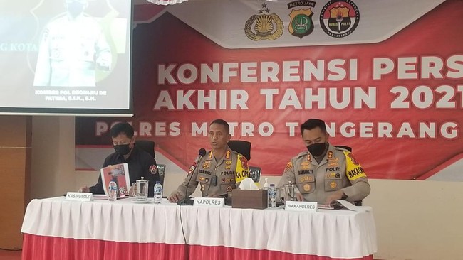 Kasus pembunuhan menjadi tindak kriminal yang paling menonjol di wilayah hukum Polres Metro Tangerang Kota selama 2021. Namun angka kejahatan secara keseluruhan menurun.