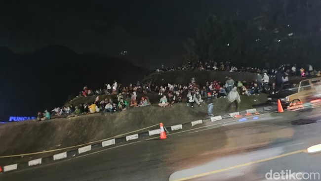 Pantauan detikcom di lokasi sekitar pukul 23.45 WIB, tampak lalu lintas dipadati oleh pengendara sepeda motor. Pengunjung di kawasan Puncak Pas berkumpul di area terbuka arah menuju Kabupaten Cianjur.