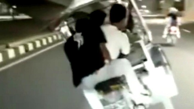 Aksi freestyle miring ke kiri itu lalu dilakukan dengan cara tiga orang di atas becak motor mencondongkan badan mereka ke kiri. Aksi itu kemudian direkam pengendara lainnya.