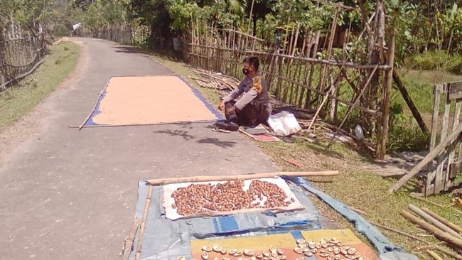 Bhabinkamtibmas Polsek Teupah Barat rela menjaga penjemuran gabah agar warga binaannya mau divaksinasi. Aksi itu dilakukan oleh seorang polisi bernama Brigadir Miswandi di salah satu desa binaannya di Kabupaten Simeulue, Aceh.