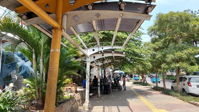 Pantauan di lokasi, Senin (3/1/2022) pukul 11.00 WIB, kerusakan di bagian atap membuat pejalan kaki yang melintasi terkena sinar matahari langsung.