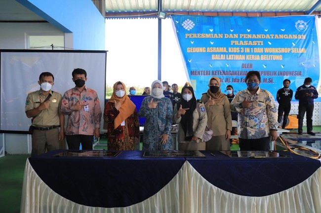 Menteri Ketenagakerjaan (Menaker) Ida Fauziyah melakukan kunjungan kerja dengan mengunjungi Balai Latihan Kerja (BLK) Belitung di Provinsi Kepulauan Bangka Belitung. Menurut Ida, BLK yang diresmikan 13 September 2019 ini punya tujuan sebagai pusat unggulan dan pemberdayaan pengembangan program ketenagakerjaan.