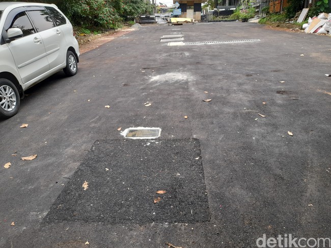 Sumur resapan yang sempat jebol dilalui oleh kendaraan politikus PSI Isyana Bagoes Oka pun telah selesai dilubangi dan dicor menggunakan semen di bagian atas tutup sumur resapan.