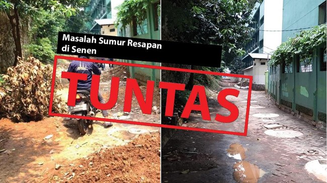 Tampak di sumur resapan tersebut tertulis 'Dinas Sumber Daya Air Pemerintah Provinsi DKI Sumur Resapan Tahun Anggaran 2021'. Kemudian, tertulis pula pelaksana sumur resapan tersebut oleh PT Duta Sarana Perkasa.