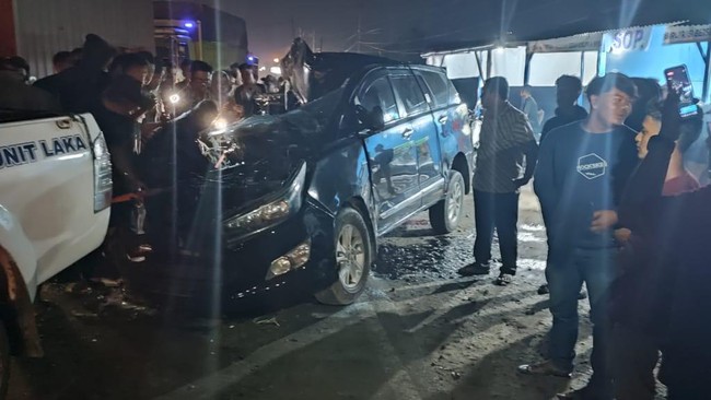 Mobilnya kemudian bertabrakan dengan bus Chandra berpelat nomor BK-7277-LY yang dikemudikan Komarudin Harahap.