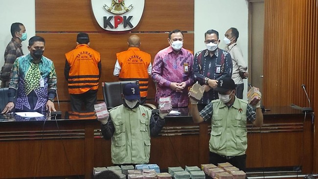 "Berdasarkan hasil keterangan para saksi dan bukti-bukti yang telah dikumpulkan oleh KPK, KPK berkesimpulan terdapat sembilan orang tersangka dalam perkara tangkap tangan dugaan tindak pidana korupsi menerima hadiah yang dilakukan penyelenggara negara," kata Ketua KPK Firli Bahuri dalam konferensi pers di kantornya, Kuningan, Jakarta Selatan, Kamis (6/1/2022).