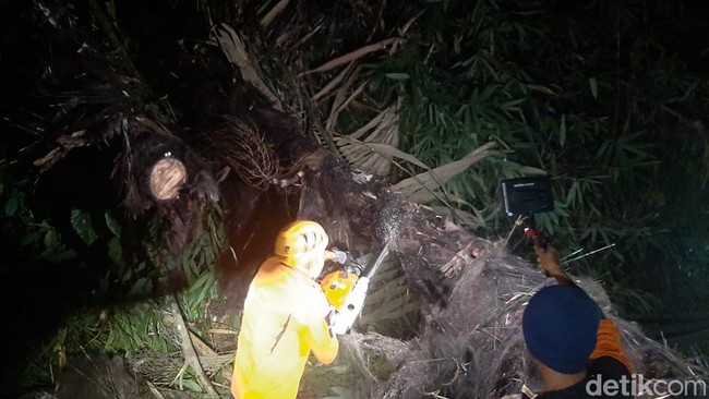 Kepala Basarnas Manado Suhri Sinaga menjelaskan pohon tumbang terjadi di Desa Sawangan Kabupaten Minut, pada Jumat (7/1/2022) sekitar pukul 17.30 Wita. Pohon yang tumbang itu karena terjadi longsor.