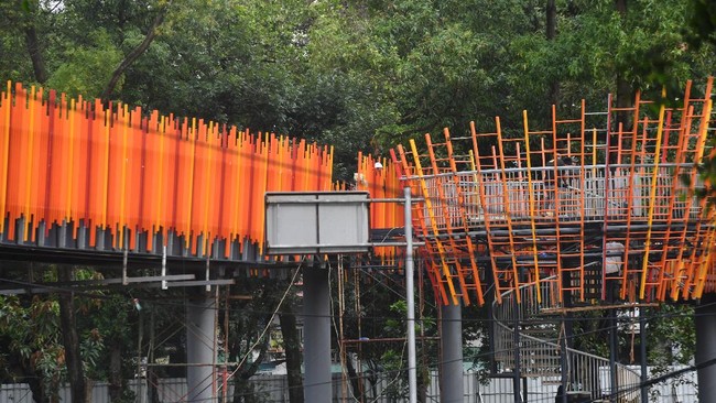 Gubernur DKI Jakarta Anies Baswedan memamerkan progres revitalisasi Taman Tebet di Jakarta Selatan menjadi Tebet Eco Park. Salah satu fasilitas yang ditambahkan adalah Infinity Connecting Bridge, yang pembangunannya hampir rampung.