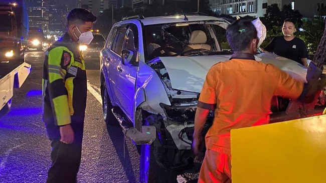 "Telah terjadi kecelakaan tunggal pukul 01.29 WIB di Jalan Tol Dalam Kota Km 5.900/B. Kendaraan Mitsubishi Pajero sport putih banting setir," kata Kasie Laka Subdit Gakkum Ditlantas Polda Metro Jaya Kompol Eko Setyo BW saat dimintai konfirmasi, Minggu (9/1/2022).