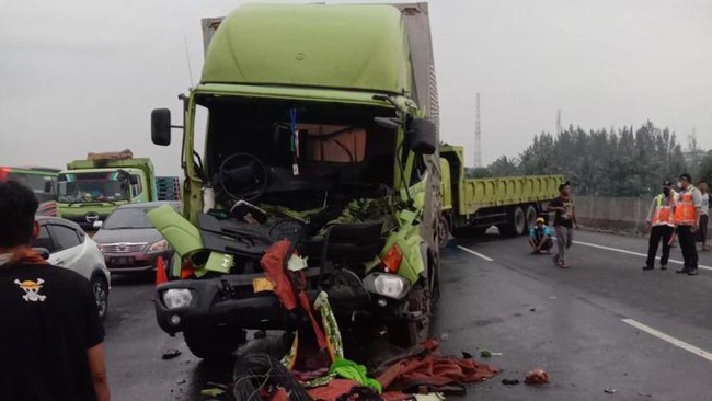 Kecelakaan beruntun melibatkan tiga truk di KM 27 Tol Tangerang-Merak arah Merak menewaskan dua orang. Belum diketahui penyebab kecelakaan maut ini.