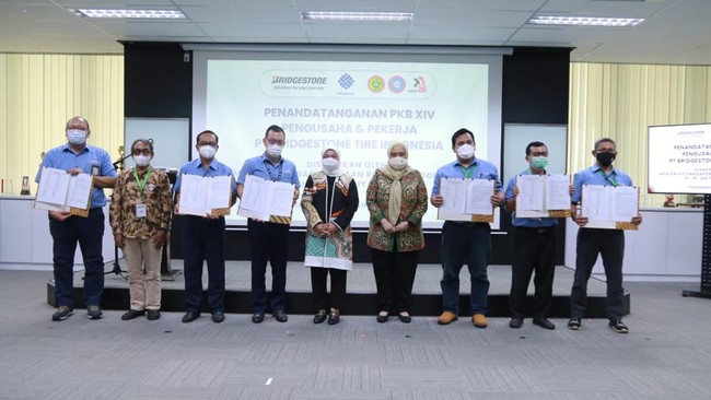 "Tidak mudah di tengah-tengah pandemi ini melaksanakan perundingan. Alhamdulillah berkat kerja keras Manajemen dan Serikat Pekerja serta adanya komunikasi efektif, komitmen dan persepsi yang sama, rasa saling empati yang tinggi antara manajemen dan serikat pekerja, akhirnya hari ini kita dapat menyaksikan acara penandatanganan PKB PT. Bridgestone Tire Indonesia ke XIV, " tambahnya.