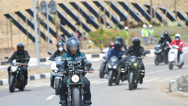 Presiden Jokowi menjajal jalan Bypass Bandara Internasional Lombok-Mandalika menggunakan motor custom. Motor yang berwarna hijau metalik tersebut merupakan motor Kawasaki W175.