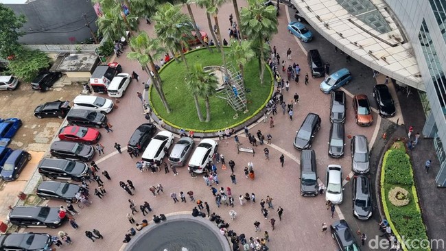 Gempa besar mengguncang DKI Jakarta sore ini. Getaran gempa terasa kuat hingga membuat karyawan di gedung perkantoran panik dan berhamburan keluar dari gedung.