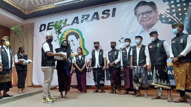 Ketum Golkar Airlangga Hartarto didukung maju menjadi calon presiden di Pilpres 2024. Dukungan itu dideklarasikan oleh para milenial di Bali.