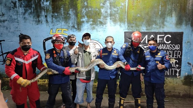 Sebanyak 7 petugas Damkar berhasil menangkap ular jenis piton tersebut. Ular itu kemudian akan diserahkan ke Balai Konservasi Sumber Daya Alam (BKSDA) Sulsel.