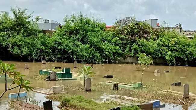 Puluhan makam di lokasi ini terbenam banjir. Beberapa nisan penanda makam pun sudah tak terlihat.